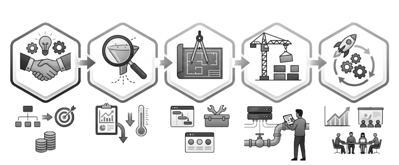 A Bucéfalo trabalha com um sistema simples: clareza primeiro, execução depois. Porque em vendas consultivas e por canal, crescer não depende de “campanha boa”, depende de processo + dados + cadência comercial.